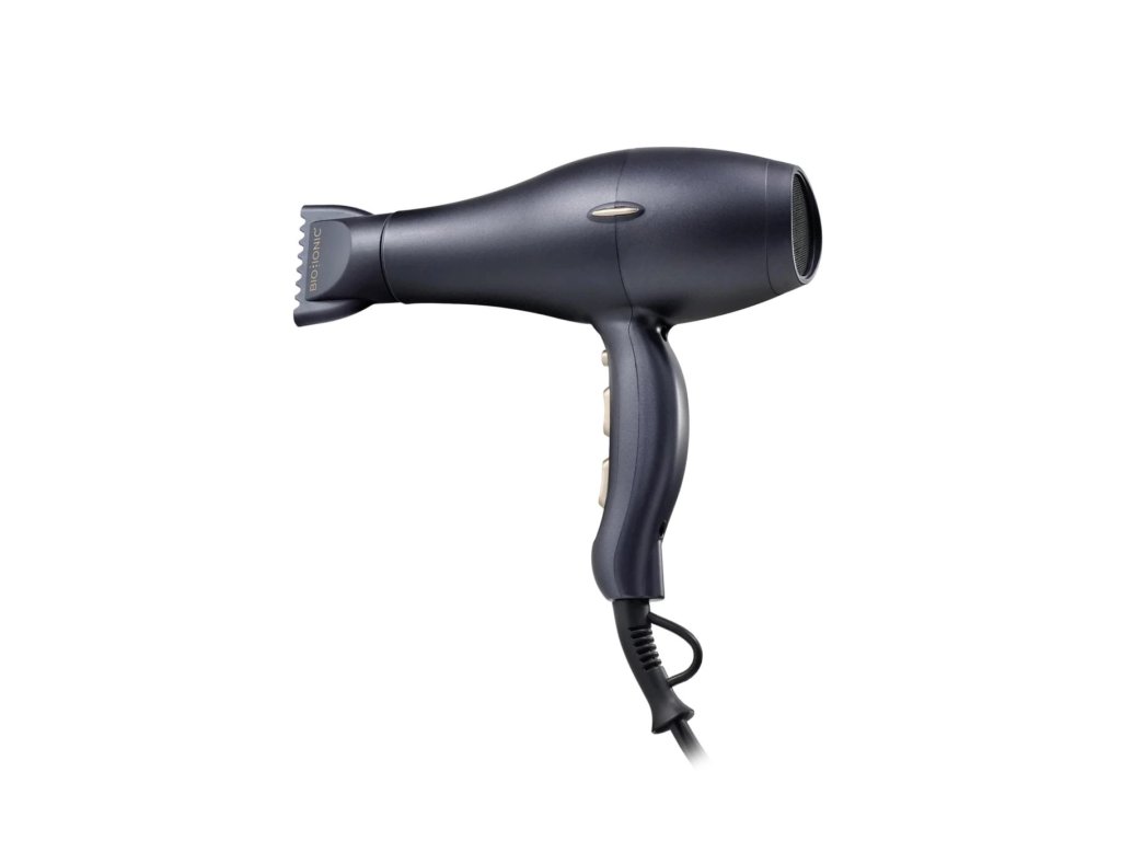 Fén profesionální kvality Bio Ionic GoldPro™ Collection. Výkonný motor s výkonem 2000 W je energeticky úspornější a má delší životnost než standardní motory, což umožňuje rychle vysušit všechny typy vlasů a poskytuje vynikající ochranu proti krepatění.
