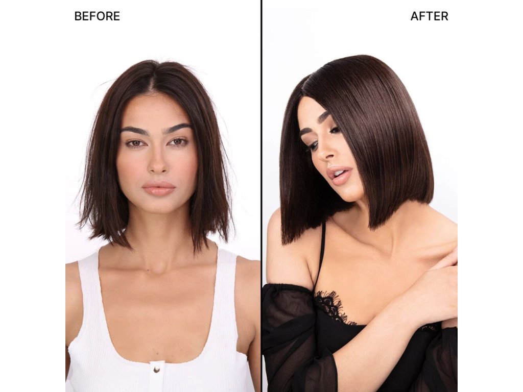 Unikátní sprej pokrývá každé vlasové vlákno neviditelným voděodolným pláštěm a vlasy tak zanechává mimořádně hladké a hedvábné. Teplem aktivovaný polymer stlačí a utěsní vlasová vlákna a jakkoli zkroucené vlasy vyhladí, až zůstanou elegantně hebké. Chrání před vlhkostí, nevytváří ale na vlasech nánosy, nezatěžuje je a nemastí je. Účinek trvá 2 až 3 umytí šamponem.
